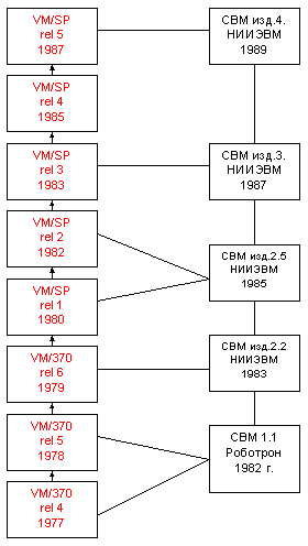 Bis 1989 wurden 4 Ausgaben des ОС 7 ЕС und entsprechend 4 Ausgaben des SVM herausgebracht . Den bedeutensten Beitrag in die Entwicklung des ОС 7.0 leisteten im NIZEWT : V. Naumov, A. Schataba, M. Lebedj, G. Trofimov und D. Konovalov. Das multivirtuelle Betriebssystem MVS EC wurde im NIZEWT ab 1984 in Kooperation mit dem Kombinat „Robotron“ durch ein Programmierer- Kollektiv unter direkter Leitung von V. Lesjuk entwickelt. Für das ESER war es die Weiterentwicklung des ОС 6.1 ЕС in folgenden Hauptrichtungen: